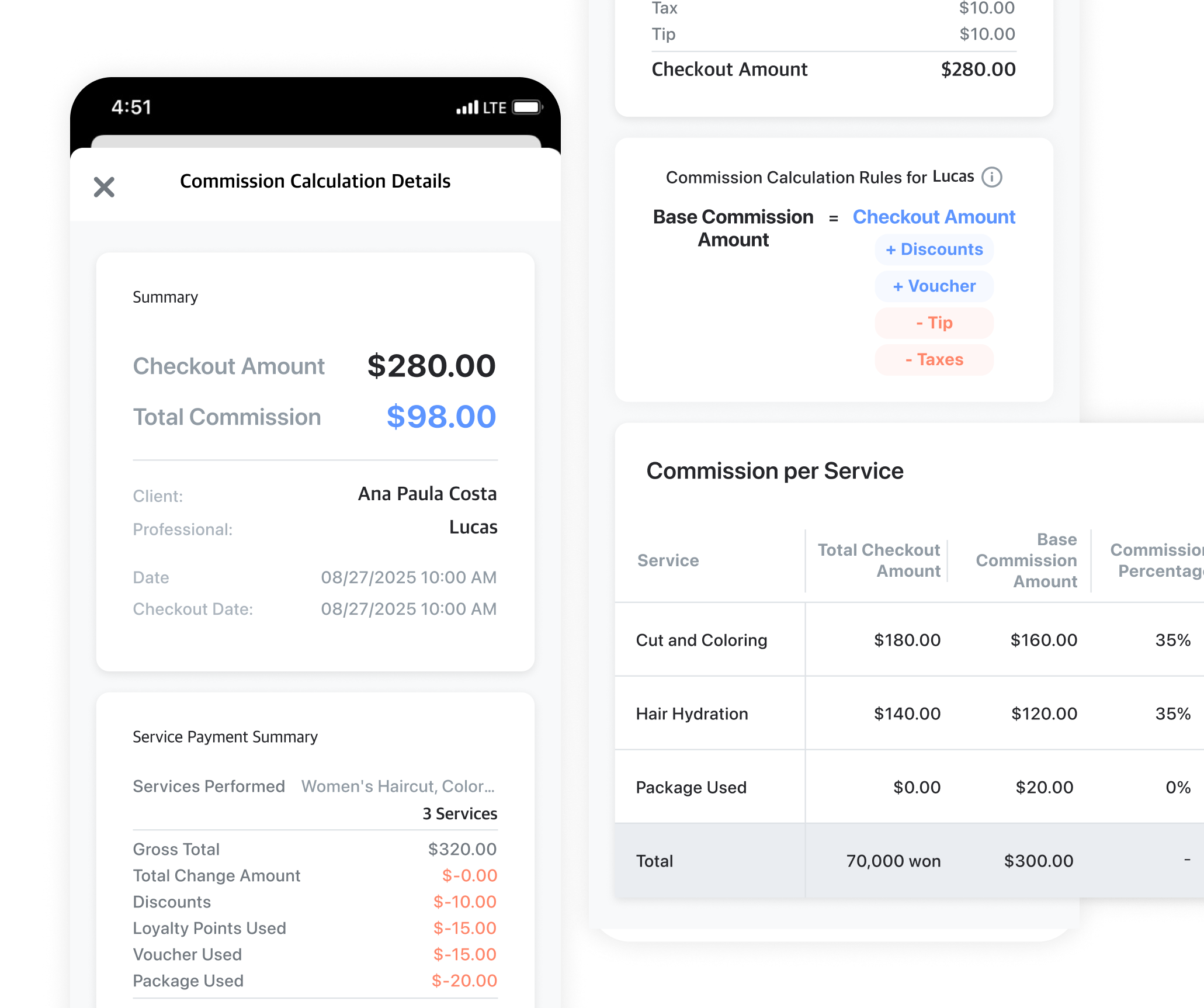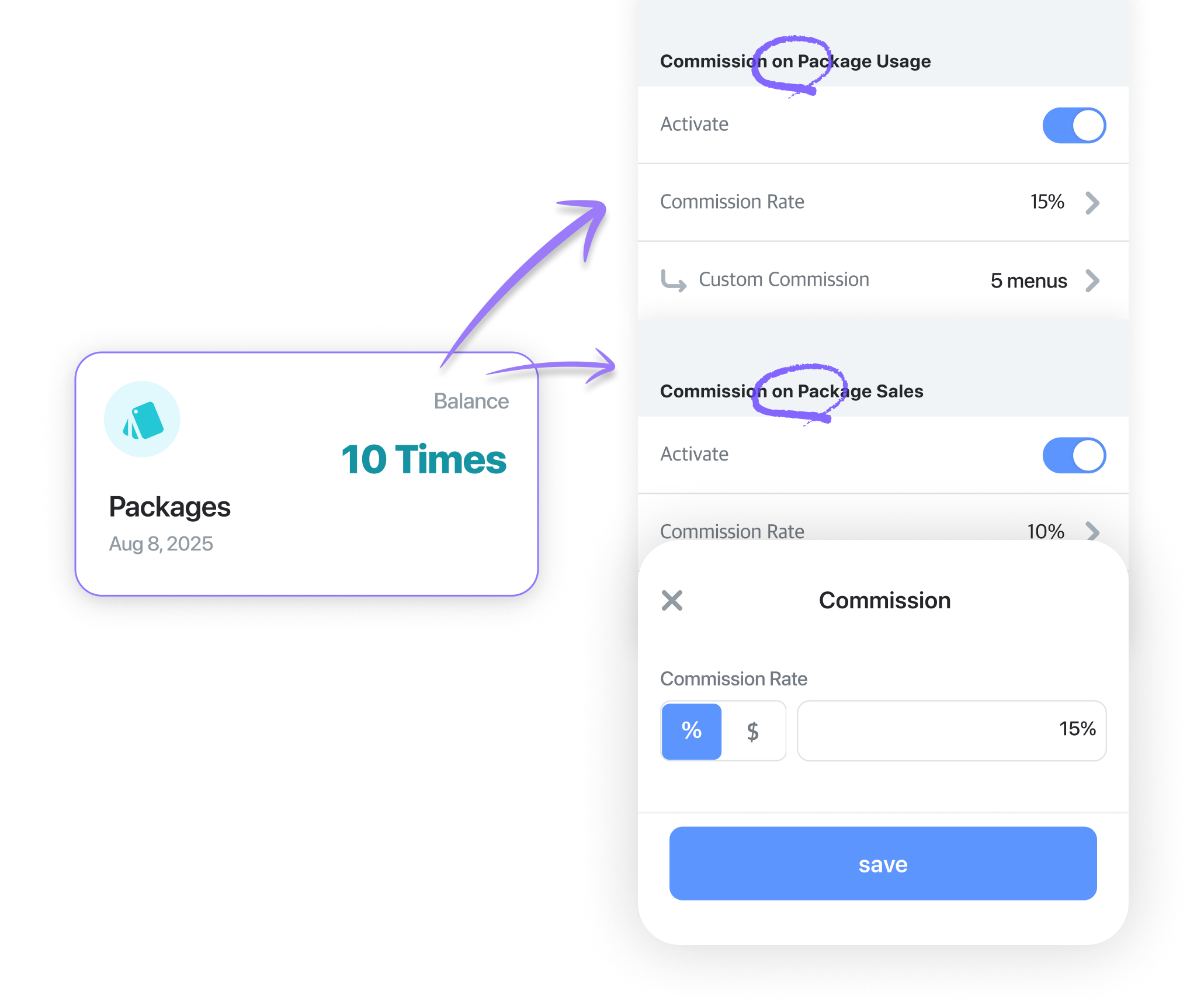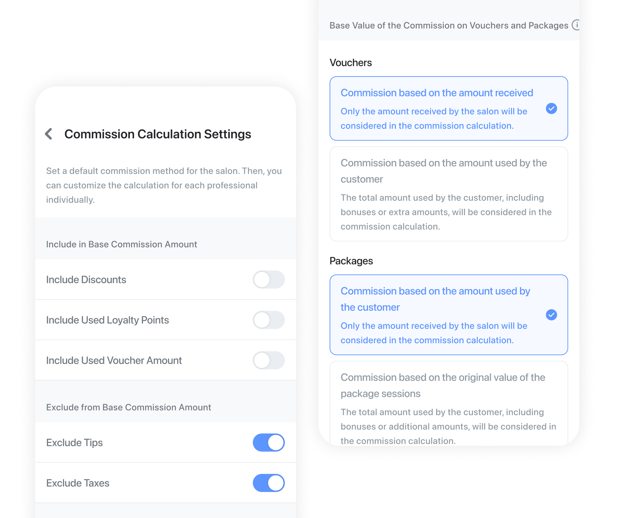 You decide what’s included in the commission: discounts, tips, vouchers, packages, loyalty points, and more.