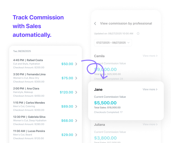 Say goodbye to notebooks and spreadsheets. Commissions are calculated automatically as sales happen by service, product, date, and staff member.