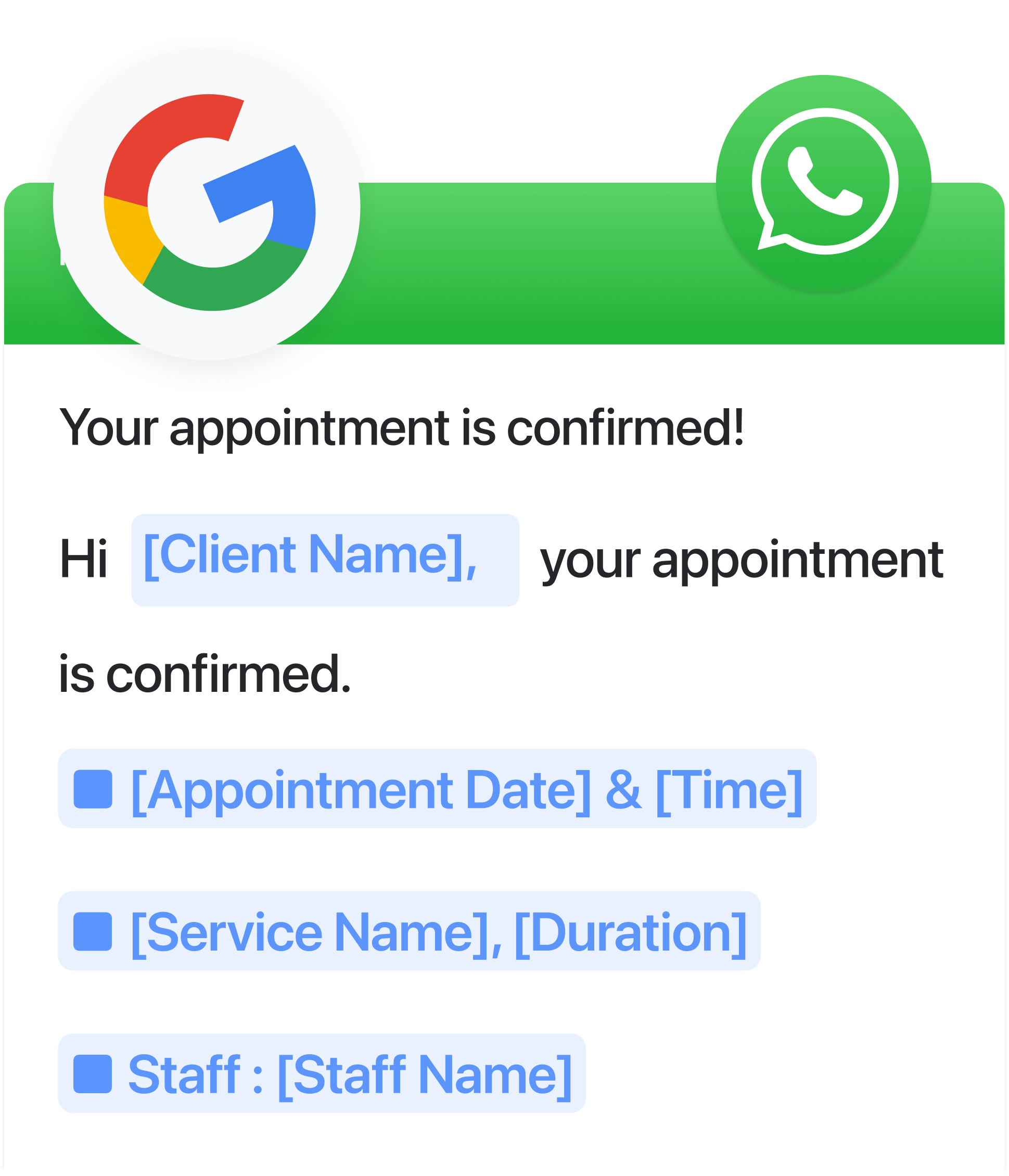 As soon as they make a booking through Google, they receive a confirmation right away via WhatsApp.