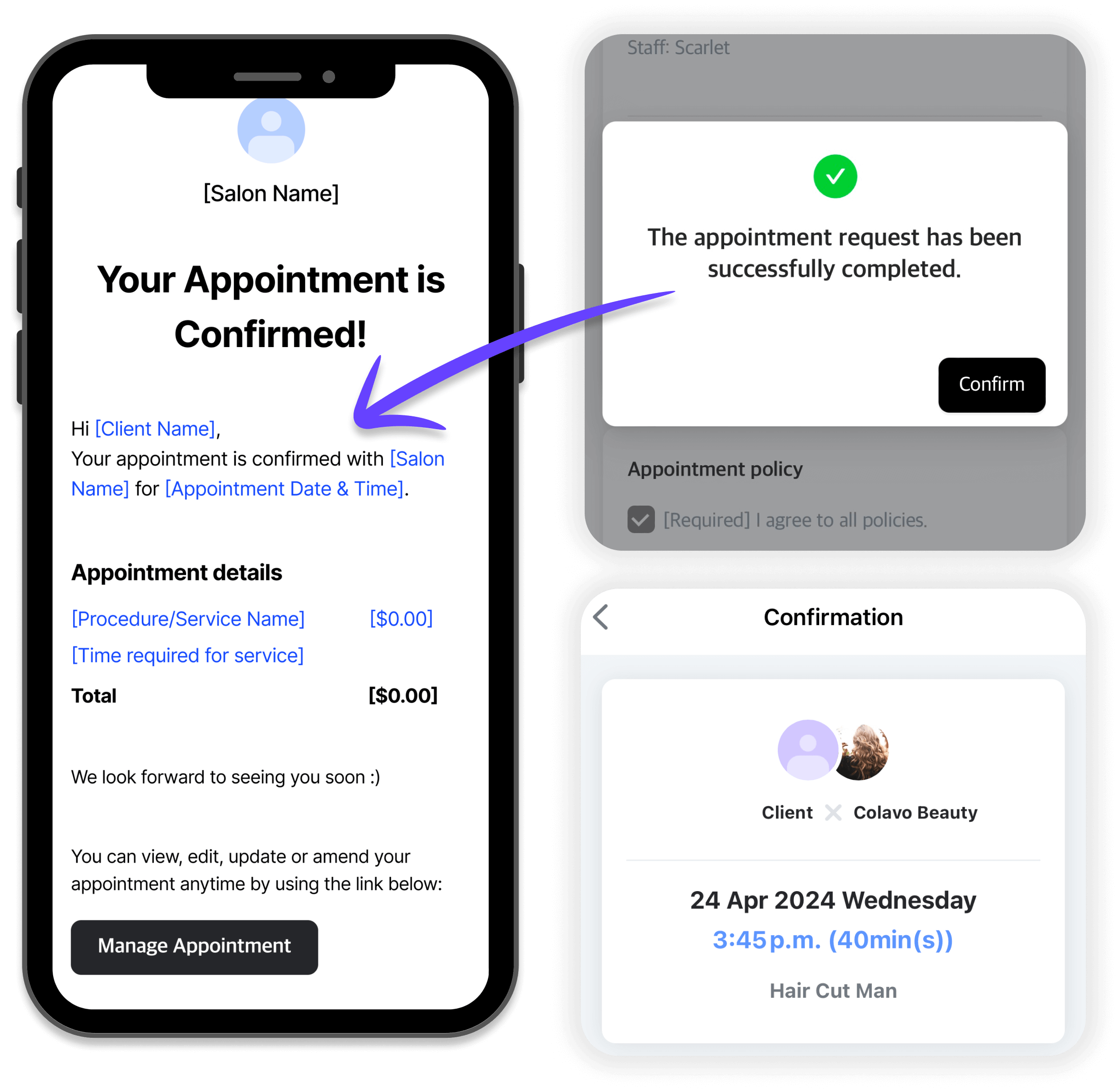 This feature keeps your clients informed about their upcoming appointments, no matter where they are, enhancing their overall booking experience.
