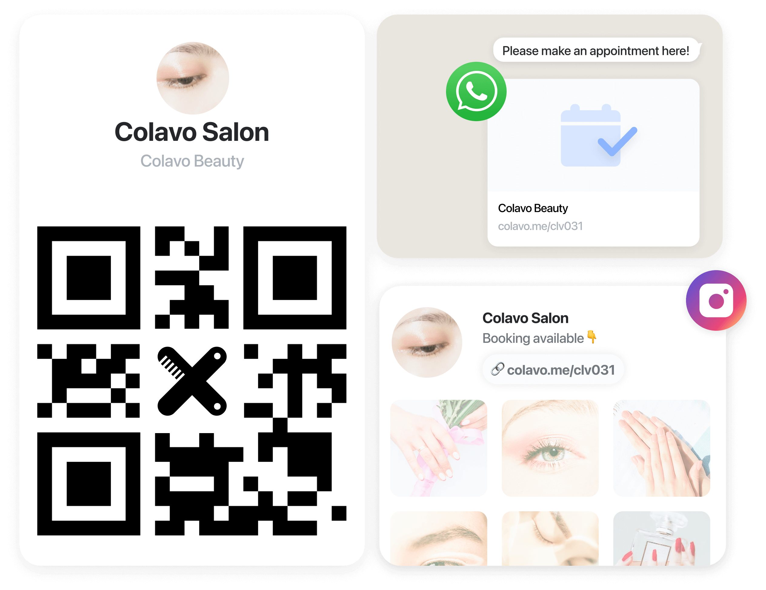 The salon's booking link can be shared across WhatsApp, Instagram, Facebook, Youtube and Google as either a direct link or a QR code for the convenience of clients.