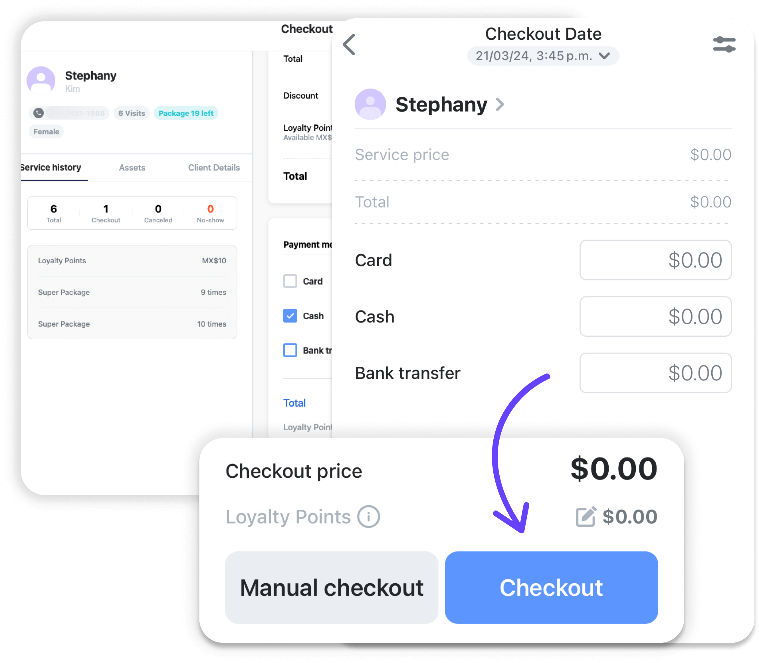 With automated sync data, completing a checkout requires just a few taps. Also every single slot can be manually edited, allowing for a customized checkout experience that aligns perfectly with specific appointment agreements.