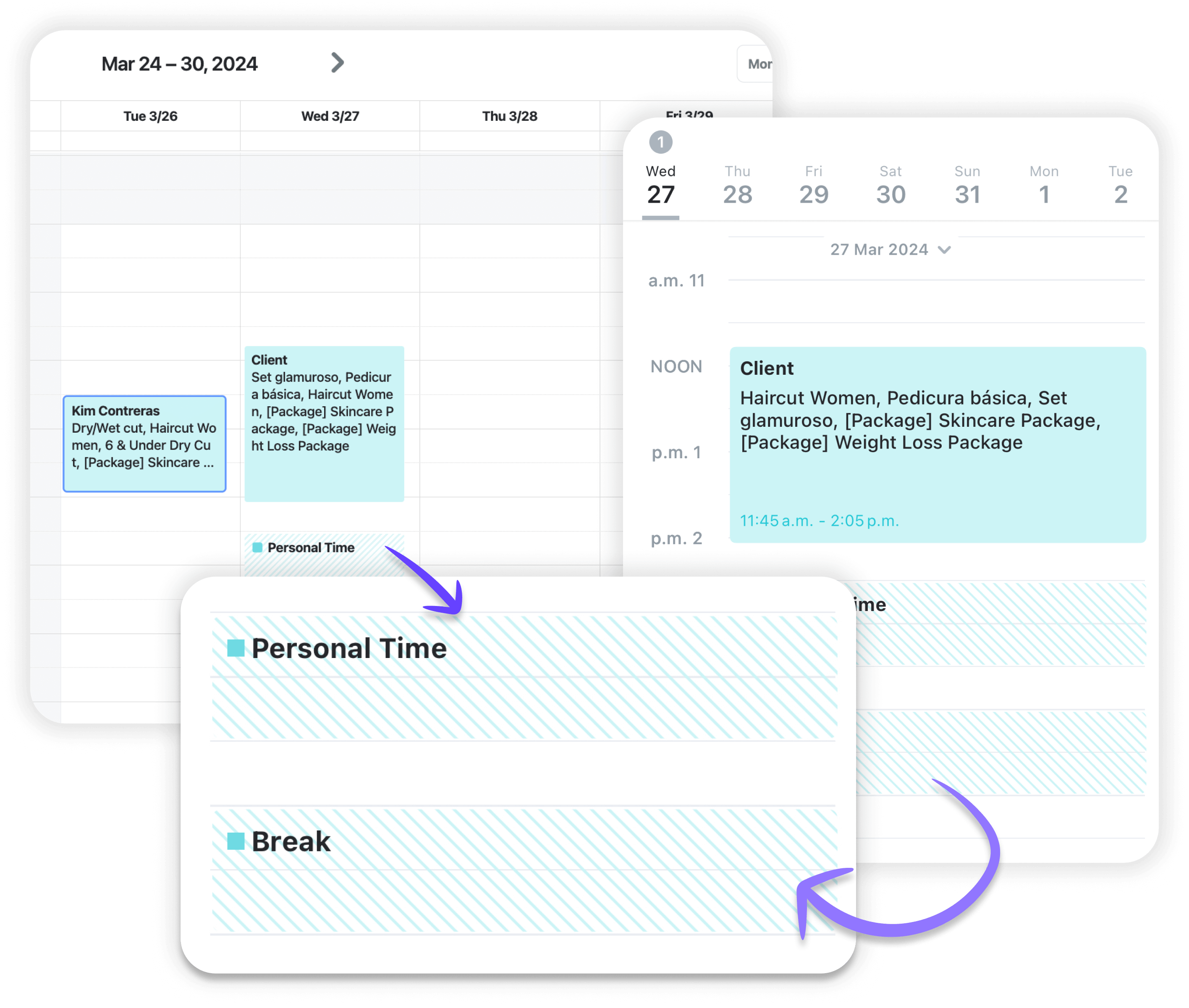Each service is unique, and so is the time you need between them. Whether it's cleaning up after a cut and color, resetting the space for a new client, or just taking a moment to rest.