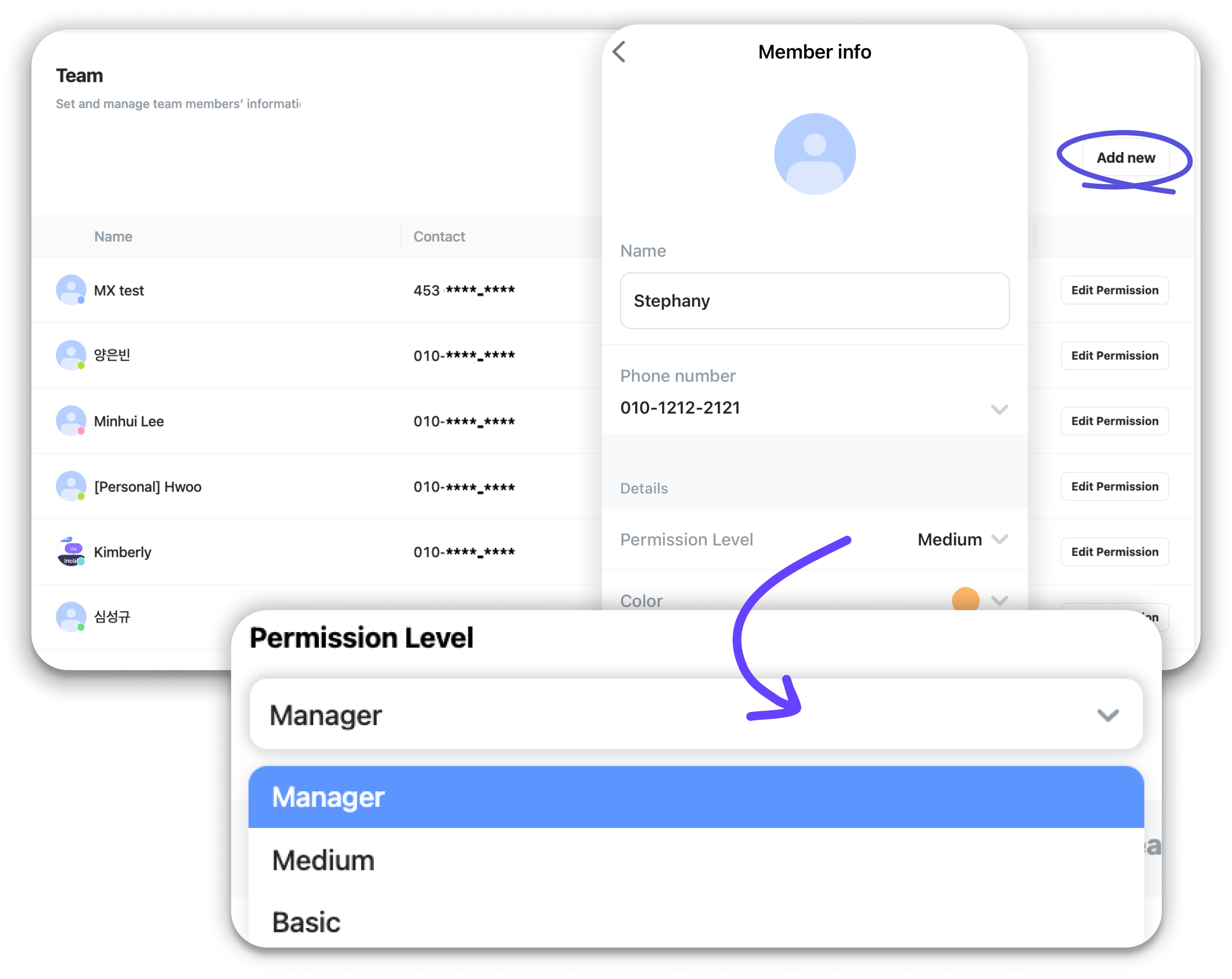 With distinct permission levels - Manager, Staff, and Intern - you guarantee tailored access for your team.